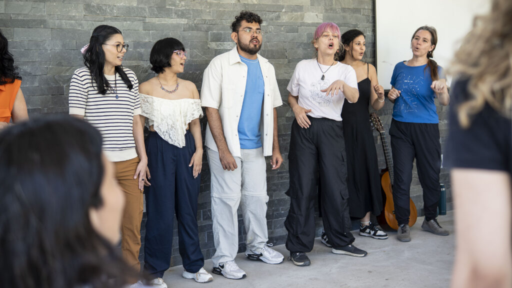 ¡Y entonces, la música nos llamó! Las genias de María José Hernández y Florencia Núñez nos esperaban con guitarra y tambor en mano para un taller de Murga que nos sacudió el alma. No solo aprendimos sobre la historia de la murga uruguaya como canto de lucha (entonamos una de 1996), sino que hicimos lo más poderoso de todo: nos apropiamos de ella.