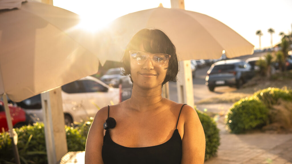 Y arrancamos con un juego hermoso: “La Super Liquidación”. El equipo de IiDi nos sorprendió con una mesa llena de remeras con el logo de verano de La Luz de Frida, ¡con unos colores flúor divinos! ¿La consigna? Cada une de nosotres debía elegir una remera, no para sí misme, sino para nuestre compañere de al lado.